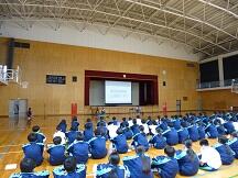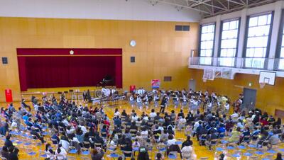 〇体育館アリーナにて、令和6年度の修了式を開催しました。