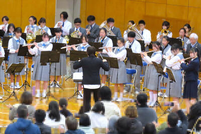 〇吹奏楽部の「スプリングコンサート」が、体育館アリーナで開催されました。