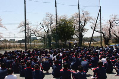 4月9日(水)、避難訓練を実施しました。新1年生は初めての避難訓練です。避難経路を確認しながら、グラウンドに避難します。全ての学年が5分以内にグラウンドに集合することができました。