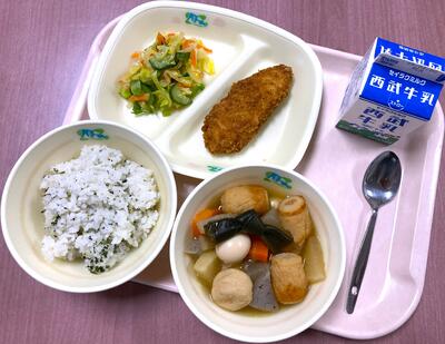 〇本日の給食は「ご飯、鯵のパン粉焼き、切干大根のはりはり漬け、豚汁、牛乳」です。