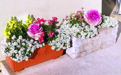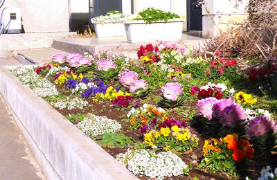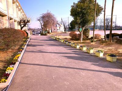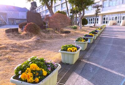○今日は風が強く、冷たい北風が吹いていますが、校地内では多くの花々が綺麗に咲いています。