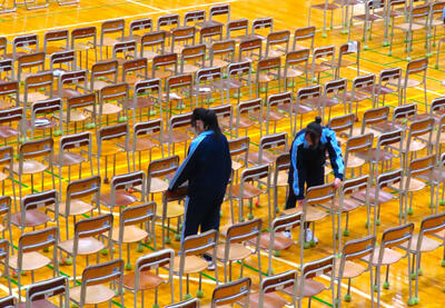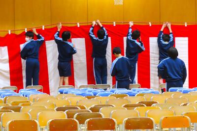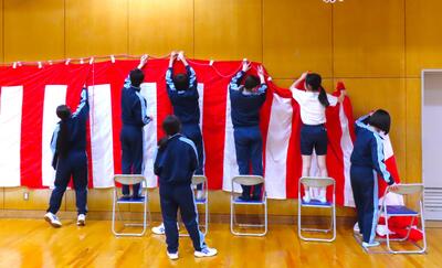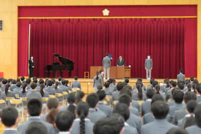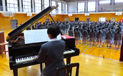 ○体育館アリーナにて、卒業証書授与式予行が行われました。