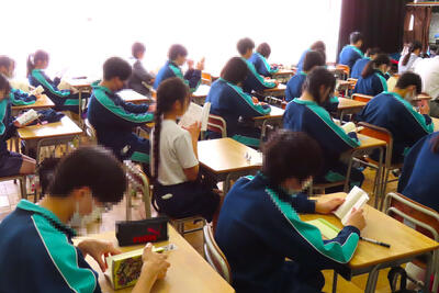 ○3年生にとって中学校最後の朝読書です。みんな好きな本に没頭します。