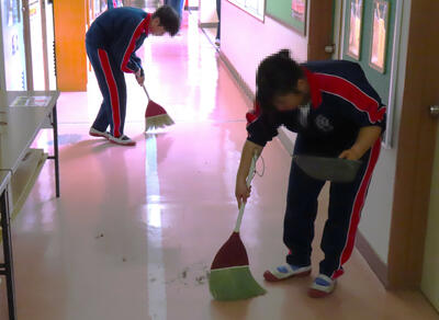 ○明日の卒業証書授与式に向け、1年生と2年生が清掃活動や式場準備に大活躍です。